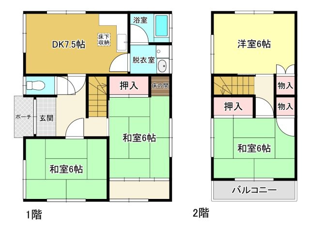 和室 6.0帖 2室 / DK 7.5帖 1室 / 和室 6.0帖 1室 / 洋室 6.0帖 1室 / |