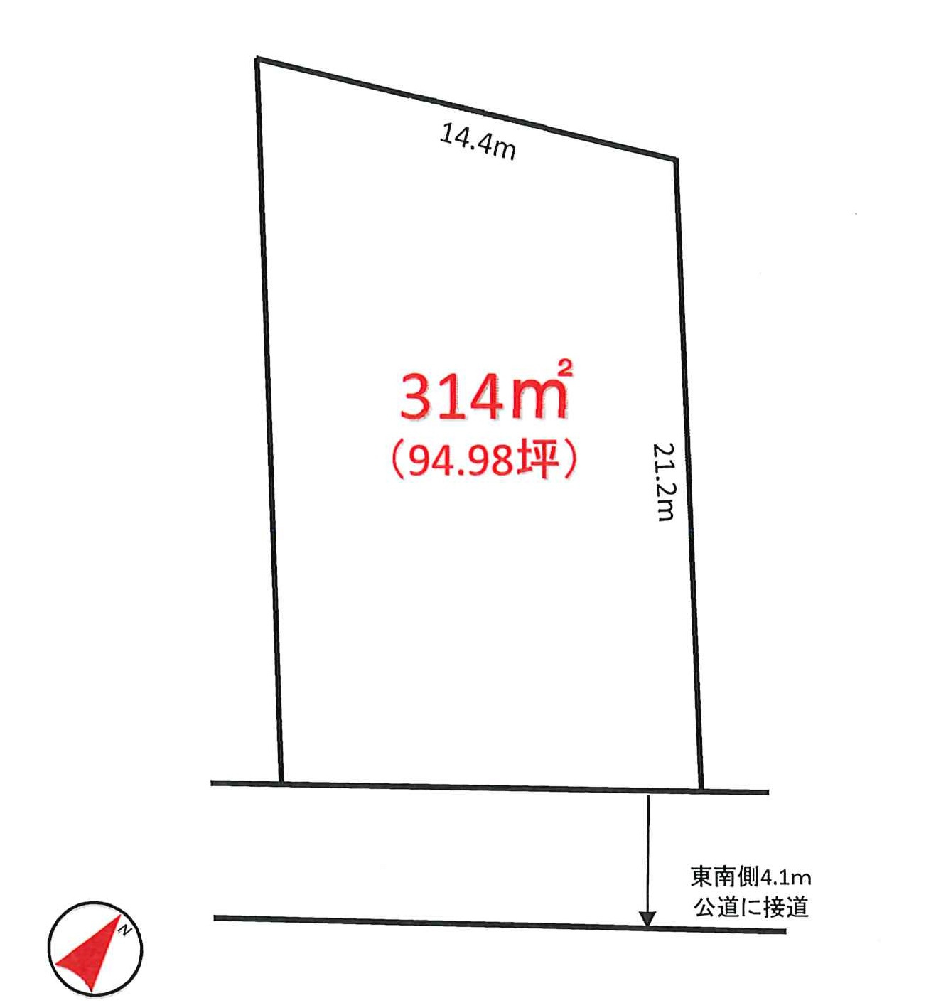 | 接道状況 | 一方 (南東側 公道4.1m) | ||